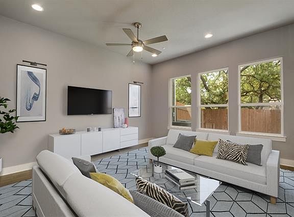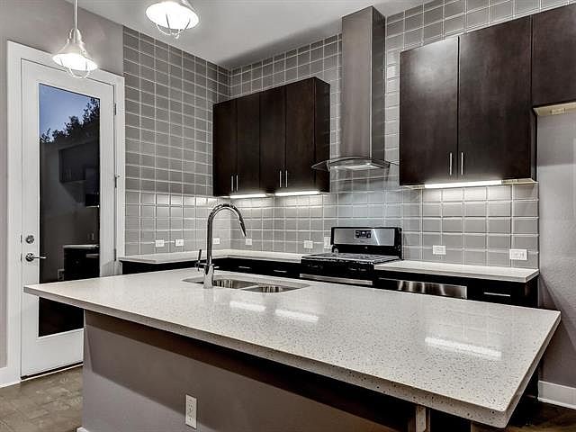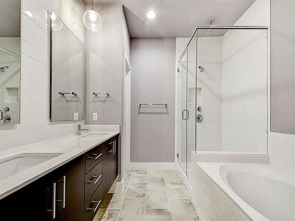 Clean, modern, new, ETA 3/18! 3-2.5, 1 garage, fenced yard. Island kitchen w/shaker cabinetry, Italian porcelain backsplash. 10' + vaulted ceilings, huge windows. Lux master bath w/dual vanity, glass shower + deep soaking tub. HUGE walk-in. Private terrace. Polished concrete floors w/carpet up. Wood upgrade available. Super efficient, spray foam + tankless H2O, LED lighting. EFL Platinum rated! HOA covers G/W/T, common ins.+maintenance, landscape. Gated. Moontower Saloon, Cafe Malta, Casa Garcia's, Sprouts, Garrison Park/Pool, Violet Crown Trail. HEB 2 minutes away. Whole Foods and Alamo Drafthouse less than 8 minutes.