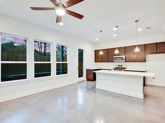 Clean, modern, new, ETA June 2019! 3-2.5, 1 garage, fenced yard. Island kitchen w/shaker cabinetry, Italian porcelain backsplash. 10' + vaulted ceilings, huge windows. Lux master bath w/dual vanity, glass shower + deep soaking tub. HUGE walk-in. Private terrace. Polished concrete floors w/carpet up. Super efficient, spray foam + tankless H2O, LED lighting. EFL Platinum rated! HOA covers G/W/T, common ins.+maintenance, landscape. Gated. Moontower Saloon, Cafe Malta, Casa Garcia's, Sprouts, Garrison Park/Pool, Violet Crown Trail. HEB 2 minutes away. Whole Foods and Alamo Drafthouse less than 8 minutes. All photos are of a previously sold condo.
