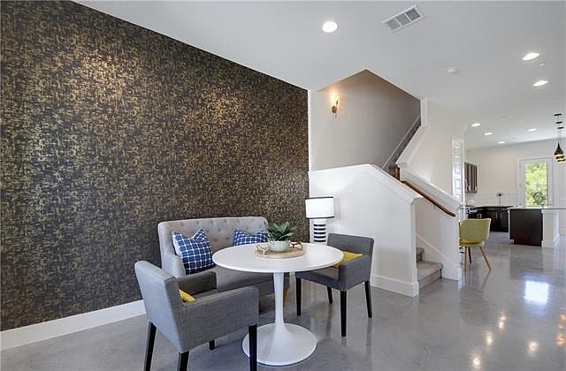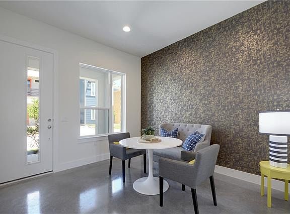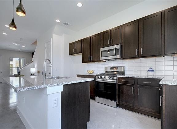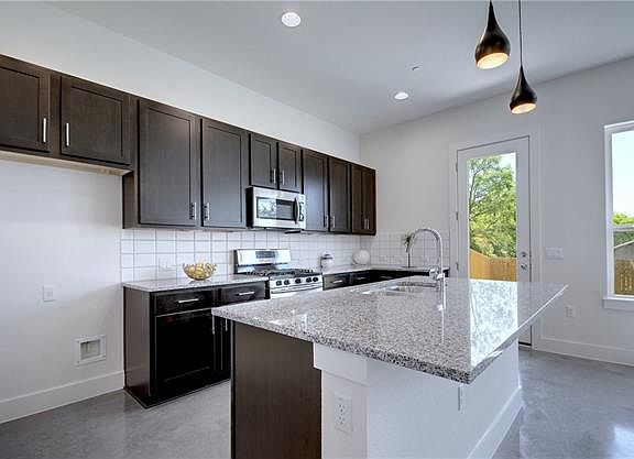 Clean, modern, new, ETA 3/18! 3-2.5, 1 garage, fenced yard. Island kitchen w/shaker cabinetry, Italian porcelain backsplash. 10' + vaulted ceilings, huge windows. Lux master bath w/dual vanity, glass shower + deep soaking tub. HUGE walk-in. Private terrace. Polished concrete floors w/carpet up. Wood upgrade available. Super efficient, spray foam + tankless H2O, LED lighting. EFL Platinum rated! HOA covers G/W/T, common ins.+maintenance, landscape. Gated. Moontower Saloon, Cafe Malta, Casa Garcia's, Sprouts, Garrison Park/Pool, Violet Crown Trail. HEB 2 minutes away. Whole Foods and Alamo Drafthouse less than 8 minutes.