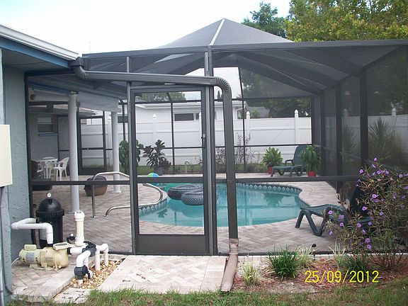 This 3 bedroom 2 bath home has just over 1300 sqft of living space and is a must see in this price range! Featuring a beautiful brick pavered patio and picturesque pool area with a birdcage screen enclosure as well as a removable child safety barrier, this home is perfect for a growing family or someone looking to entertain. The large master bedroom has a stone trimmed fireplace and sliding doors that lead directly to the patio/pool. The back yard is completely enclosed by a 6 foot tall privacy fence and provides an ample safe space for pets to run and play. **The A/C system was fully replaced in 2014 including the handler, condenser, ducts, returns, etc and is covered under a 10 year parts and labor warranty** All the windows were replaced with double pane storm windows. The home also has an 80 gallon hot water heater that was installed in 2015. The property is located in the X zone and survived IRMA virtually untouched. Seller can provide survey and wind mitigation upon request. This home is conveniently located just minutes from shopping, dining, bus lines, and entertainment. Call today to schedule a showing before it's too late!