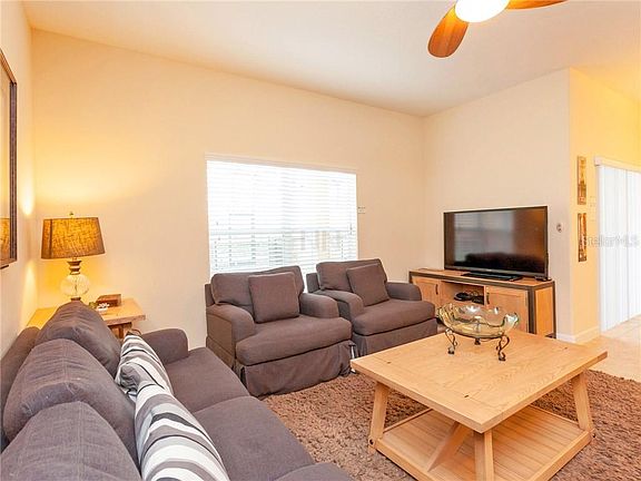 Location, Location, Location! Great opportunity to own a one of a kind townhouse inside one of the best known resort communities in the Orlando Disney area. This is an incredibly unique home, it has a front pond view and a rear pond view, this well-furnished home has a large downstairs bedroom and three bedrooms upstairs including the master bedroom. It has Tile flooring on all common areas with granite counter tops and stainless-steel appliances, a big pool area great for entertaining. Minutes to Margaritaville, Disney and all Major attractions. You can rent this out short term or long term! Community amenities galore include but not limited to a manned gated community, movie theater room, billiards, community pool with community spa, air hockey, a small shop and more! Do not miss out!! HOA includes cable, phone, internet, grounds care. You must see it!