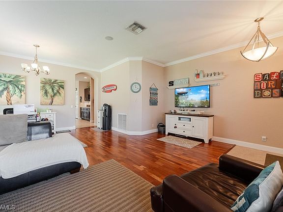 Your slice of paradise awaits in the highly desirable Danforth Lakes community, where this 4 bed, 2 bath, 3 Car Garage Pool home combines elegance, comfort, and convenience in one spectacular package. Danforth Lakes is a community designed with your lifestyle in mind, featuring low HOA fees, NO CDD and NO Flood Insurance required. Whether you're seeking a year-round residence or a vacation getaway, this home delivers the ideal blend of comfort & style. As you enter into this home, you're greeted by the harmonious blend of wood & tile flooring throughout, creating a warm & inviting atmosphere. The heart of the home is the large kitchen with granite & stainless appliances, perfect for gatherings with loved ones. The living area seamlessly opens to the screened lanai, leading to your private pool oasis. Also for your convenience the roof was replaced in 2023, The garage also has a mini-split AC for your comfort for those warm summer days. Danforth lakes is located in the heart of SWFL & close to RSW Airport, Shopping, Grocery & Beaches.