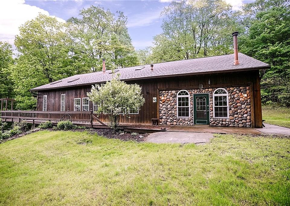 Incredible custom-built cabin on almost 40 secluded acres. Massive barn on property with electric service and 2 overhead doors, metal roof, poured floor. Creek running through property loaded with mature hardwoods. Unbelievable hunting. House has 3 bedrooms with 2 full baths. Updated cherry kitchen with brand new refrigerator. Huge great room with wood-burning stove, vaulted ceilings and windows overlooking deck and private yard. Spiral staircase to upstairs loft. New windows and carpeting. Tankless water heater. Enclosed porch. Wraparound deck. Separate hunters kitchen! Close to Letchworth, Stony Brook, Finger Lakes. Absolute Paradise.