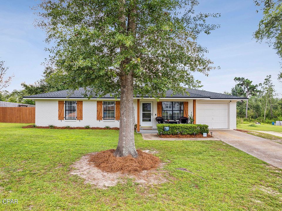 Don't miss this beautiful painted brick 3 bedroom 1 bath home on a half acre. From the inviting front porch with solid cypress pillars to the remodeled interior you will feel right at home when you step in. Highlights include wood look tile in living room, galley kitchen with raised ceiling, pantry with barn door access, bathroom with shiplap detail, master bedroom with walk in closet, huge backyard, and 20 x 30 metal shop with rolltop door. Other highlights include real wood shutters on home (bedroom shutters can close), single car garage with washer and dryer access, attic storage, partially fenced yard, pump house, new roof in 2019, and A/C in 2011. The home has a well with a Culligan water softener and also Culligan filter in kitchen. The septic is located in the front left of home. The table and chairs in dining room will remain with home. Small shed in back yard does not convey. Make plans to view this home today!