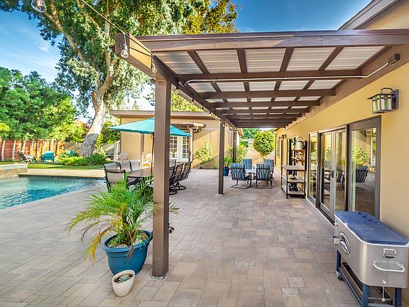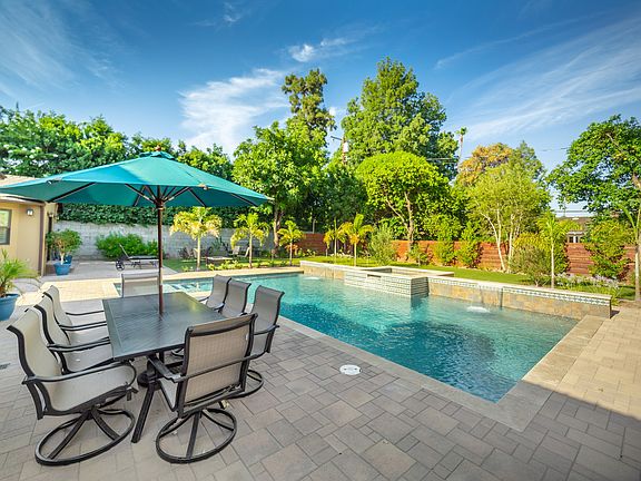 Sherwood Forest at its finest! Single story home with a detached 1 bedroom guest unit on a 17,497 Sq.Ft. lot. The back yard is a paradise w/ gorgeous newer pool & spa, pavers and BBQ with island (completed in 2015). There is a putting green & built in gas fire pit. Main house with stunning open floor plan w/ travertine floors is an entertainers dream! 4 bedrooms (1 bedroom being used as a Theater room). The house also features 3 updated gorgeous bathrooms. Kitchen was remodeled & expanded with large center island! Counter tops made of recycled glass which is stunning! Dual dishwashers, double ovens, new microwave and wine fridge with all stainless steel appliances and a walk in pantry! Large master with smooth ceilings, recessed lighting & a walk in closet, Master bedroom also has French doors out to back yard. Beautiful spa like bathroom with beautiful tile, double sinks, shower and separate upgraded tub. Living room with smooth ceilings and separate attached enclosed sun room with beautiful wood beamed ceiling and recessed lighting. Newer copper plumbing, electrical, 2 newer air conditioners, newer dual pane windows, sliders and French doors, Shutters and black out shades on bedroom windows. The detached guest unit with kitchen, bedroom, living room, bathroom w/ shower and own washer & dryer, split system air conditioning/heating and tank-less water heater. Gorgeous pool with waterfalls and spa, BBQ, artificial turf, putting green, and rustic fire pit.
