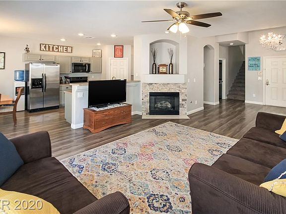 This stunning Mountains Edge home is ready to move in! Modern Laminate Wood floors, Stainless Steele appliances, open floor plan with fireplace. Close to parks and shops. Community Pool. Master bedroom has vaulted ceilings with walk in closet. Minutes from Mountains Edge Exploration Peak with scenic hiking trails, Park and Playgrounds. LOW HOA Fess and NO SIDS