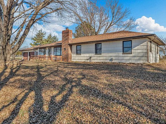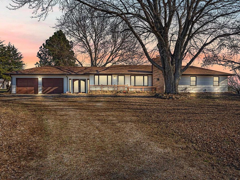Welcome home to this spacious southeast Topeka ranch nestled on 1.9 acres of peaceful, paved countryside—just 8 minutes south of Lake Shawnee! A long circle driveway leads you to the front of the home, offering both convenience and charm. Step inside to a large, open living and dining area with stunning hardwood floors and a cozy wood-burning fireplace with a stove insert as the centerpiece. The dining room flows seamlessly into the oversized kitchen, complete with beautiful custom wood cabinets and brand-new stainless steel appliances installed in 2023. Down the hallway, you'll find three comfortable bedrooms and two full bathrooms. The main bathroom has been thoughtfully remodeled with a walk-in shower and a built-in double vanity for extra storage and style. Just off the living room is a versatile, fully finished 200 sq ft breezeway connecting the house to the garage. It’s the perfect spot for hosting gatherings, setting up a game room, or enjoying a relaxing hobby space. The finished basement adds even more room to spread out, featuring a bar, a large second living area, and a bonus bedroom—great for guests or a home office. Step out back onto the deck and take in beautiful sunrises with your morning coffee. There's also a convenient pole barn on the property, perfect for storing campers, boats, trailers, and more.