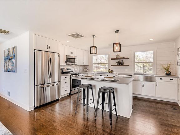 HGTV modern farmhouse style in a quiet country setting w/out having to move to Waco! Fully renovated & absolutely adorable. All systems updated, new HE furnace, water heater, sewer line, windows, doors... Real shiplap throughout! Wood burning Fireplace. Amazing kitchen w/matte quartz counters, 5 burner gas convection range, french door fridge w/water & ice, island seating & room to shimmy. Master bath with honed marble floors & quartz double sink counter. Custom walk-in closet! Large lot with giant apple tree, spruce & more. Oversized detached two car garage with rooms for storage was added in August 2023. Watch the horses walk by on their way to beautiful Crown Hill Lake park 1.5 blocks away - zoned for horses & other animals! Plant out the garden large enough to feed all your friends. It is hard not to feel happy in this super peaceful neighborhood away from the traffic & hustle but still amazingly close to everything. 5-10 min from tons of great restaurants & shopping & very close to Sloans/Tennyson/Highlands area too! Lot is 18,778 sqft. Get the best of both work, a short drive to the mountain and the city!
