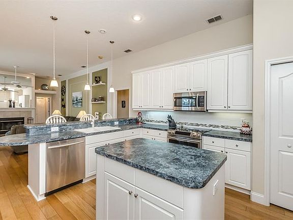 House Beautiful! Desirable, Quality, Samuelson Built Home in Gated Enclave Bellerive Section of Villages of Fox Hollow! Spacious 4 Bed, 3 Bath, 3 Car Garage with Birdcaged Pool with Waterfall Diamond Brite Finish, new Screened Birdcage, Plus Outdoor Kitchen w/ Granite Countertop! Located on Peaceful Cul De Sac! Living Room/ Dining Room Combo Features Brand New Neutral Carpet! Freshly Painted Neutral! Crown Molding! Large Eat In Kitchen Features 42in White Raised Panel Cabinetry w/ Crown Molding! Desirable Newer Samsung Stainless Steel Appliances! Tile Backsplash! Island! Breakfast Bar w/ Pendant Lighting! Real Hardwood Flooring! Family Room Features Wood Burning Fireplace and Real Hardwood Flooring! Volume Ceilings! Triple Split Bedroom Plan! Large Master Retreat! Double Walk In Closets! Master Bath Features Double Vanities, Garden Tub and Separate Walk In Shower! Updated Guest Bath Features New Quartz Countertop! New Lights! Tile Flooring! Newer A/C System (2 Years Old) New Filtration System for Pool! Inside Laundry Room, Great Location! Nearby Shopping, schools, Trinity Hospital, Easy Access to Tampa International Airport. Original Owner! Must See Inside to Appreciate...
