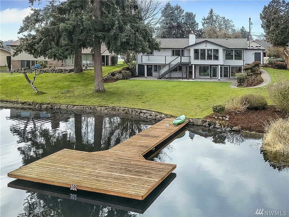 Lake Steilacoom living at its finest. Enjoy 3800SF+ of completely remodeled living space w/expansive lake views from almost every rm. You'll love the amazing KIT which features a Viking range w/double oven & beautiful custom cabinets, two master suites...one up & one down, the fabulous home theater w/surround sound, hidden drop down screen, wet bar & custom folding glass door to outdoor living. 75' of private, no-bank waterfront, newer dock, spacious deck, indestructible flooring, covered patio.