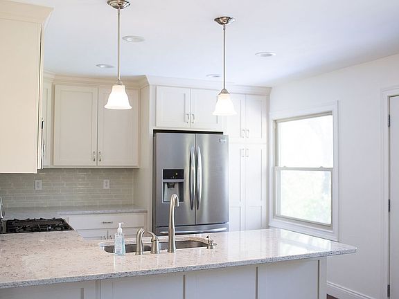 Updated 4 bedroom ranch with full walk out basement. This totally remodeled home greets you with engineered wood flooring, custom built in cabinetry, fully applianced kitchen with solid surface counter tops with custom cabinets. The home is ideally located on 1 acre with a spacious in ground pool. The finished basement boasts a generous family room space, additional 4th bedroom, full bath and private laundry area.