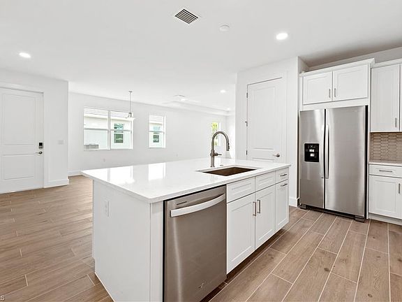 Welcome to the beautiful Khaya floor plan—offering 1,801 square feet of thoughtfully designed living space, including 3 spacious bedrooms, 2 full bathrooms, and a 2-car garage. This stunning new construction home perfectly blends comfort, elegance, and the Florida lifestyle you’ve been dreaming of. Step outside to enjoy true Florida outdoor living with a western exposed covered lanai overlooking a lushly landscaped yard—the perfect setting to take in vibrant sunsets. There’s even plenty of room to add a custom pool after closing, creating your own private backyard oasis. Inside, the heart of the home is a state-of-the-art chef’s kitchen, featuring sleek quartz countertops, ample wood cabinetry, premium stainless steel appliances, and a natural gas cooktop for premier cooking. Whether you're preparing a quiet meal or hosting guests, this kitchen was made for entertaining. The private primary suite offers a peaceful retreat with a spa-like en suite bathroom, complete with a luxe walk-in shower and an oversized walk-in closet. Two generously sized guest bedrooms share a stylish full bathroom, ideal for family or visitors. Just steps away from the Seven Shores resort-style amenity center, residents enjoy exclusive access to a luxurious clubhouse, sparkling pool, fitness center, putting green, and a dedicated lifestyle director who curates events and activities year-round. This home includes impact-resistant glass windows and doors, is built to the highest builder standards, and comes with the peace of mind of a full builder warranty. Be sure to ask the sales consultant about limited-time rate buydown incentives. Interior design selections and the full floor plan are available in MLS supplements—don’t miss your chance to own this piece of paradise! Lot 14.