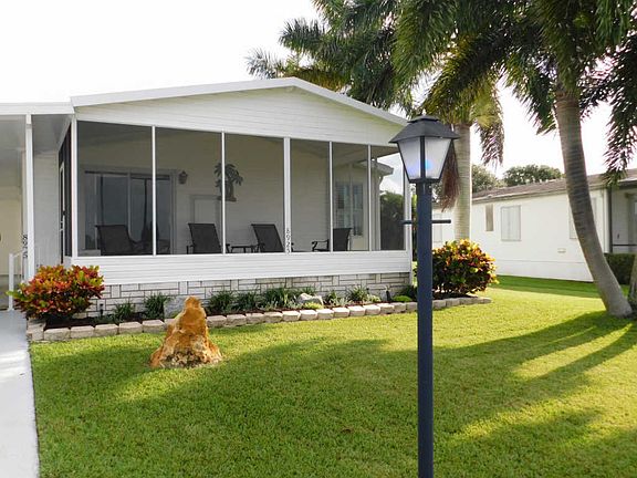 Exquisite 2 x 6 framed manufactured home with unobstructed views to the lake with ducks and swans. This home has been immaculately maintained. Open concept with cathedral ceilings and roofline living room windows. Both bathrooms have been updated as well as the kitchen with granite countertops. New plumbing lines March 2020 with transferable warranty. 10 x 20 tiled patio rescreened Jun 2020. New carpet in master bedroom Oct 2020 warranty conveys. Water heater replaced 2015. Tiedown straps were replaced Jul 2020. Included with home is a 12 x 20 air-conditioned lark shed in 2009 it's 140 mile an hour rated anchored on a concrete pad fully insulated and lined with 1/2'' plywood. Double driveway for plenty of parking space for automobiles and golf carts.