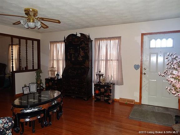Nice All Brick Home with Walk Out Basement in Floyd Central School District! This home features a Formal Living Room and a Family Room. The Kitchen comes complete with appliances, a pantry and sliding glass doors that lead to the enclosed patio/sun room. The partially finished walkout basement is great for large gatherings and features a work out room and full bath. There is also plenty of storage area for all your things. The big back yard is fenced and features a covered patio area for relaxing. The detached garage has plenty of space for your cars and toys. Updates include Newer Roof, Water Heater, Andersen Windows and Sliding Glass door, Walk In Tub and Hardwood Floors throughout. Call to view Today!