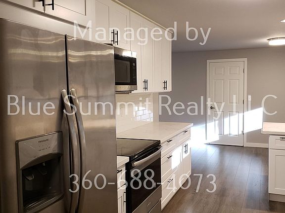 This recently remodeled gorgeous 4 bedroom, 2.5 bath home sits on over half of an acre and is tucked in with trees for privacy. It offers a large living room with wood burning fireplace, beautiful eat in kitchen with stainless steel appliances, separate dining room with a slider to the sun room, a large den, a bonus room that's perfect for a home gym or additional storage and a large 2 car garage with workbench. Laundry room includes washer/dryer. Pets okay with pre-approval and $25/month pet rent per pet. North Thurston School District. Listed by Angi Kenneson, Broker Blue Summit Realty LLC Tenant pays utilities