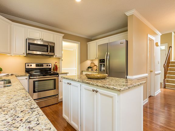 Executive charmer w/new carpet & interior paint. Kitchen features white custom cabinets, granite counters, recent SS appliances, & xtra pantry storage cabinets. Formal living/dining rooms! MBR suite has cathedral ceiling, skylight, expansive WIC, dual vanity, garden tub, & sep shower. Family room w/gas logs for cozy winter nights. Screened porch & back deck views the peaceful wooded lot. Beat the heat & enjoy the outdoors in the community pool, tennis courts, & Durant Nature Park.