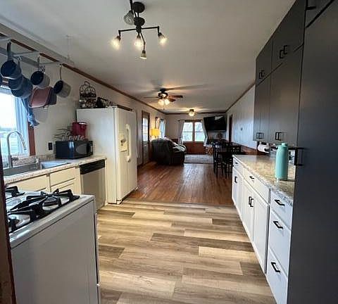 - Included: Dishwasher, Microwave, Range, Refrigerator, Water Softener Owned