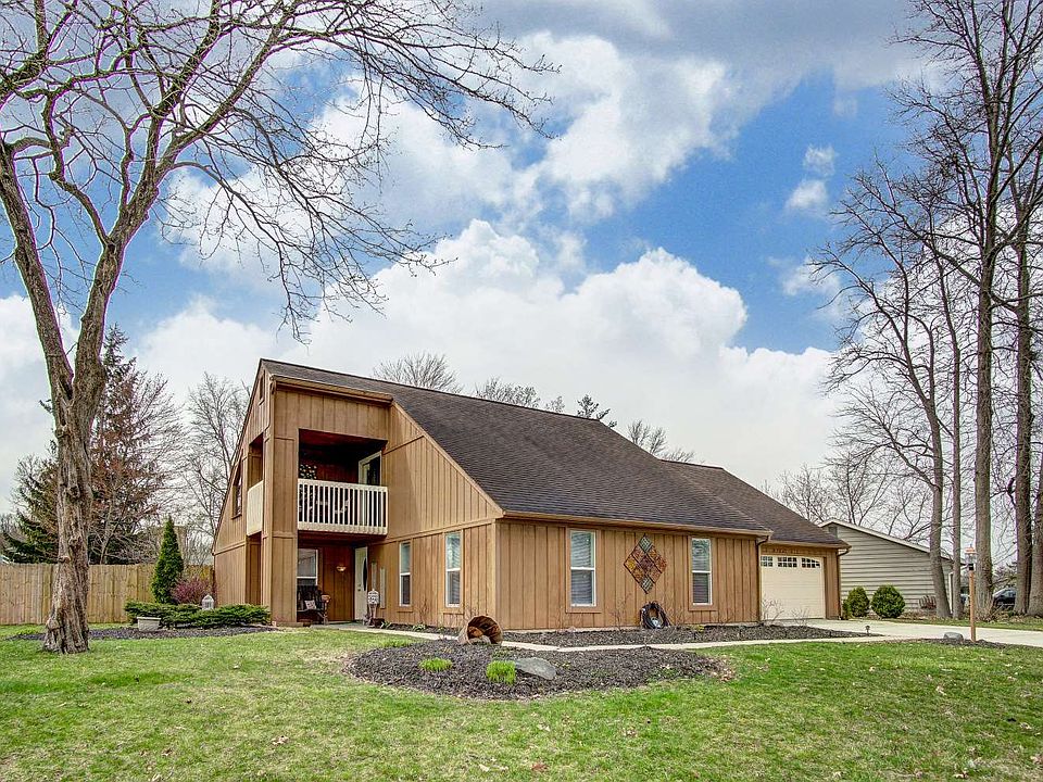 Offer Accepted, showing for backup only. Looking for a unique home with easy access to Fort Wayne or New Haven? This is the home for you. This almost 1/3 acre lot is the perfect setting for this home with it's many updates and impeccable upkeep. The uniqueness begins as you walk to the front door, you/ll see a sitting balcony that is actually usable and not decorative. As you go inside the front door, to the left is a large living room with Spanish style fireplace and new laminate flooring. The open concept continues into the dining room which is between the living room and kitchen. There is a breakfast room just off the kitchen. The uniqueness continues into the kitchen with high lacquered countertops and and all new stainless appliances. Three bedrooms, including the master are on the main level with the master having it's own full bath. The upper level is the crown on this jewel. All tongue and groove solid wood ceilings in the second living area that leads to the balcony. There is a possible 4th bedroom off the second living area. There are numerous updates you will observe as you walk through this house which include windows, flooring, countertops, remodeled cabinets, new appliances, newer washer and dryer which all are staying. Outside of the home you will notice new driveway, walk ways, new garage door and front door and a storage shed. Come take a look at something a little different.