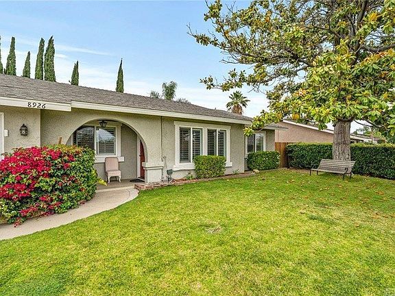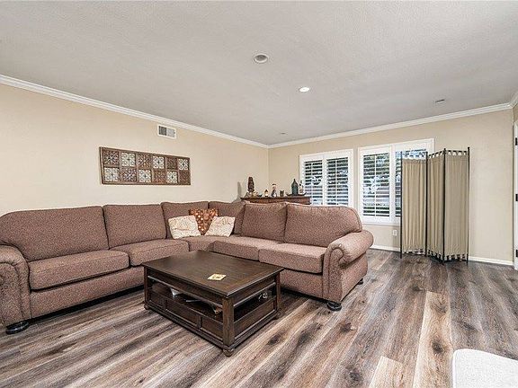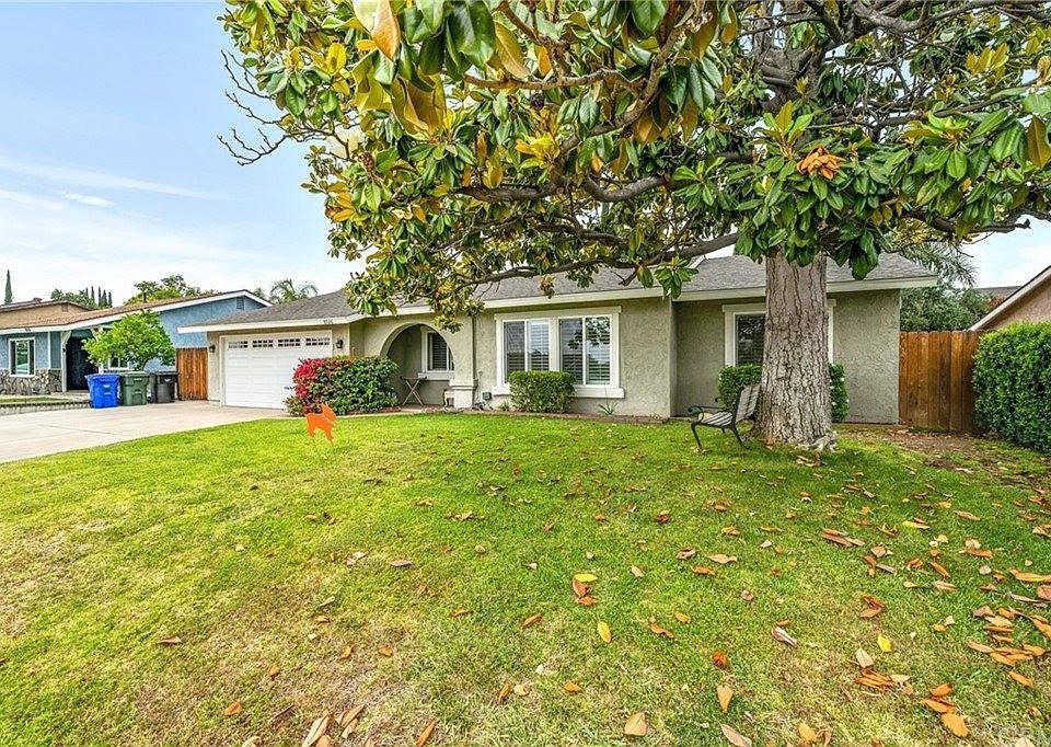 Welcome Home! This lovely Home is nestled in Rancho Cucamonga. A shaded front porch to enjoy your mornings, days and evenings. Enter into open living room with laminate flooring throughout, high ceilings, crown molding and recessed lighting. Nice private dining area with neutral colored tile. The spacious kitchen has granite countertops, tiled backsplash design, ceiling high cabinets, and stainless steel appliances. Three spacious bedrooms, laminate flooring, crown molding, and ceiling fans. Two full bathrooms. A large carpet family room currently being used as a 4th bedroom with a large fireplace and wood plank design ceiling. Direct access to the attached 2 car garage in addition to laundry area. An attached den being used for storage. Front area RV, Boat, Toys, extra vehicle parking. Large backyard, hardscape water conserving design with an open covered patio. This is a must see. Centrally located near schools, shopping center, parks, and walking/biking trails. This is a must see! Come view & tour your next home.