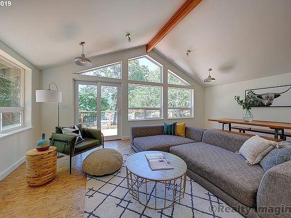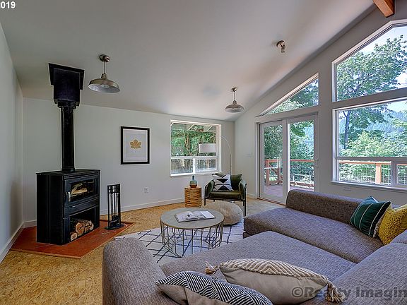 Sweeping views of St. John's Bridge and the Willamette. Backs to over 25,000 SF of green space. Contemporary rustic remodel. Brand new kitchen and bath remodel, added family room and viewpoint deck. Lots of space for gardening. Large bonus room or den off the master. Two blocks from Cathedral Park and St. John's shops and restaurants. Secluded river front location.