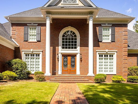 Nestled in the gated community of Stonewood Farms in North Columbus, this stately home offers privacy on a sprawling 5-acre lot. Enjoy outdoor living with a pool, expansive covered porch, and a detached pool house that can serve as a mother-in-law suite. The main residence features four bedrooms—two located on the main level and two upstairs. Inside, you'll find soaring ceilings, a cozy library, and a wet bar, perfect for entertaining.