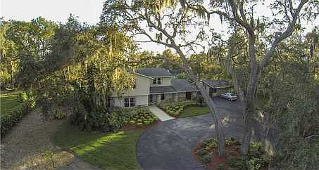 MOTIVATED! Magnificent home and lushly landscaped property with so many bells and whistles! This gorgeous home, situated on 1.49 acres mol could be right out of 'Better Homes and Gardens.' Conveniently located, yet with a secluded country feel, this property is fenced and has a security gate at entrance. The spacious home features a formal living and dining room with wood floors, huge family room with beautiful large windows overlooking the gorgeous mature landscaping, wine nook, and huge eat in kitchen with newer appliances. First floor features one bedroom and bath with granite countertop and inside laundry room. Upstairs features four bedrooms (one is currently being used as a work out room) and 2 baths, including the huge master bedroom and master bath with dual sinks, granite counters, and updated cabinetry. All upstairs bedrooms have crown moulding and master bedroom has tray ceiling, window seat and plenty of closet space. Outside is an amazing oasis perfect for parties and entertaining. You will be amazed at the super sized summer kitchen, complete with 2 fridges and built-in grill. The screened enclosed pool area is surrounded by pavers and even has its own full bath. There's more--the back yard also features a wood-burning fireplace, detached storage building and banana, orange, lemon, lime, tangerine, grapefruit and papaya trees. For all your toys, there is a 2 car detached garage PLUS two 2 car carports. Other features include upgraded double pane windows & sliders and a whole house generator.