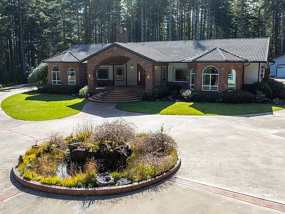 Exclusive Bandon Estate on 24+ Pristine Acres Near the Beach & Bandon Dunes - Discover a rare masterpiece, this breathtaking contemporary estate sprawls across over 24 private, timbered acres, mere minutes from Bandon’s pristine beaches at Whiskey Run and the iconic Bandon Dunes Golf Resort—a golfer’s ultimate retreat. A majestic grand entry ushers you into a realm of unparalleled luxury, featuring a gourmet kitchen with a sleek island, elegant formal living and dining spaces, a commanding stone fireplace, and graceful arched doorways. The primary suite is a serene oasis with dual walk-in showers and private patio access, while each additional bedroom offers its own luxurious bathroom suite. Recently refreshed with new flooring and paint throughout, this estate radiates sophistication and comfort. A stunning detached pool house with a grand 10’-deep swimming pool featuring a springboard, a rejuvenating sauna, bathroom, shower, and a chic game room with a wet bar. Revel in the expansive concrete courtyard linking the home and pool house, perfect for memorable gatherings. Outdoors, indulge in a world of opulence: treasures include a modern chicken coop, greenhouse, scenic nature trails, and a fully paved driveway leading to a stately circular drive with a serene pond water feature. The verdant grounds boast merchantable timber, a year-round stream with a tranquil pond, a robust 20-gallon-per-minute drilled well, and ample parking with RV hookups. A Generac backup generator ensures unwavering reliability, while a large double-car garage and detached garage provide generous space for vehicles and equipment. This unrivaled estate, brimming with privacy and endless amenities, demands a personal visit to experience its splendor—schedule your exclusive showing today!