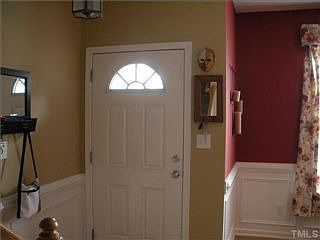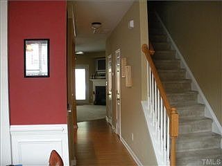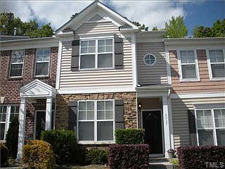 Beautiful, move in ready townhome offers: charming brick front;9ft smooth ceilings;flowing laminate hardwoods;upgraded lighting;2 inch blinds;tasteful paint;arched accents;spacious kitchen w/42 inch maple cabinets w/crown;two master bedroom option;one w/vaulted ceilings;private, wooded view off patio;community pool w/clubhouse&playground; wonderful location close to RDU,RTP,540