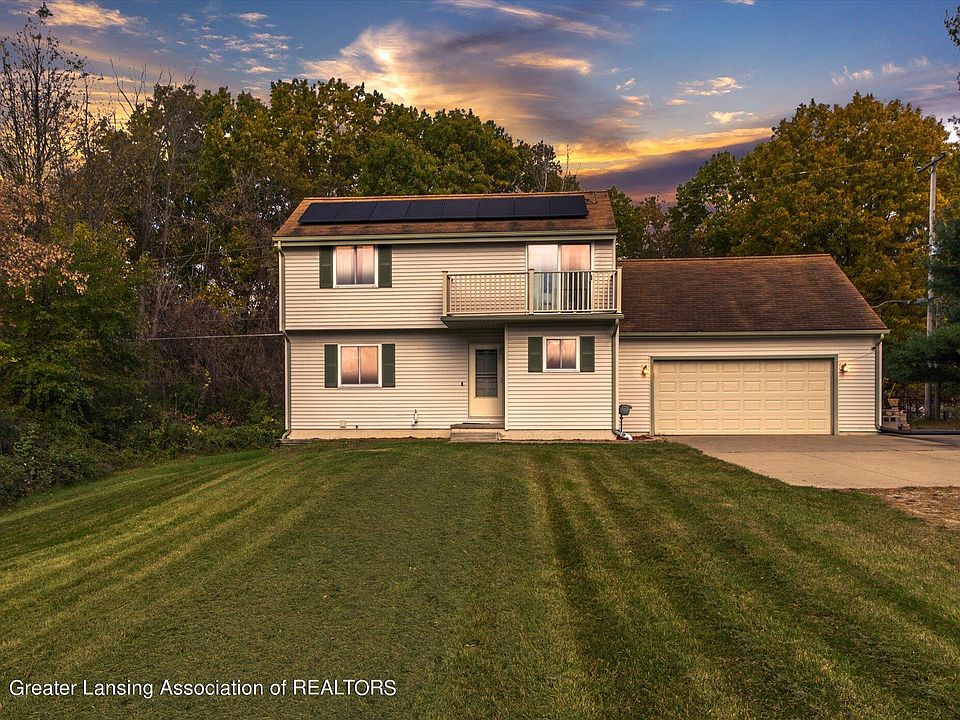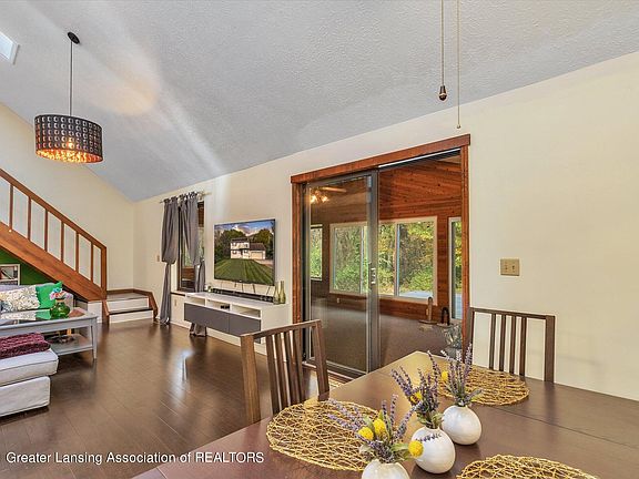 Updated energy efficient home on a private lot in Haslett schools. Have the feel of the country while being so close to all Meridian Township has to offer. Save $ on monthly electric bills due to seller's investment in solar panels (electric bills are super low). Upon walking into the home, you will see the new hardwood floors on the main floor and the completely updated kitchen with granite countertops and stainless steel appliances. The vaulted ceilings in the living room and dining space give a more open and large feel. Off of the dining space is a sliding door that leads to a rustic four seasons room (with newer windows) overlooking the private backyard. Upstairs, there are 2 bedrooms that share an updated bathroom and the third bedroom is on the main level, but could also be easily used as a home office. Downstairs, there is additional room for an entertaining space and plenty of room for all of your storage needs. As far as mechanicals, furnace and water heater are newer and there is also a high end water filtration system that stays with the house. Schedule your showing in this hot market before this home is gone.