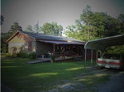 2+ acre property with stocked (with catfish) pond in the back yard! Low maintenance brick home with a "welcome home" enclosed back porch and deck that overlook all the colorful plantings, flowering shrubs, and a big assortment of fruit trees (pear, peach, plum, fig, pecan, etc). For the hobbiest and piddlers, a wired workshop, storage areas, outside sink for cleaning those fish! Well for outside watering. Very open floor plan with a bedroom on each side of the home. Appliances can remain. Sun-filled rooms will delight you. Functioning shutters for front windows. Concrete driveway. Whether you are a first time buyer, down-sizing, etc., a phone call could make your tomorrows HAPPY ones!