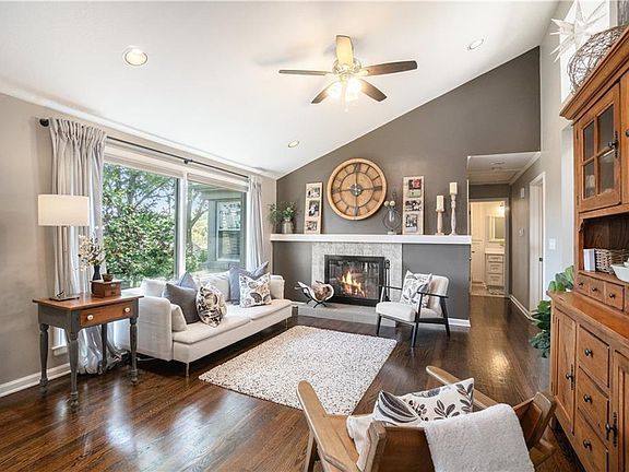 Charming and stylish, this 1.5 reverse story sits proudly on a beautifully landscaped corner lot in the heart of Old Leawood. Tucked away on a quiet street, this fully updated gem offers modern comforts with timeless character. A welcoming front sitting porch and brick walkway set the stage as you step inside. The main level features a spacious primary suite with a spa-inspired bath, plus a second bedroom and fully updated bath. The open dining and living room impress with soaring ceilings, hardwood floors, a cozy fireplace, and incredible views of the backyard. Off the main living space, you’ll find a family room and an amazing kitchen equipped with granite countertops, gas stove, coffee bar with wine fridge, seating island, and an abundance of cabinetry. Outdoor living shines here—relax on the expansive new deck or gather around the fire pit below while enjoying the serene views. The walk-out lower level adds even more living space with a family room and fireplace, laundry area, two additional bedrooms, and a full bath. The primary suite is a true retreat with an updated shower, double vanity, and fabulous walk-in closet. With an attached two-car garage, plenty of space to spread out, and upgrades throughout, this home truly checks every box. All this in a prime location close to shops, restaurants, parks, and award-winning schools—this Old Leawood beauty offers the perfect blend of comfort, style, and convenience.