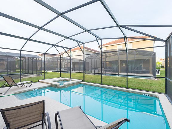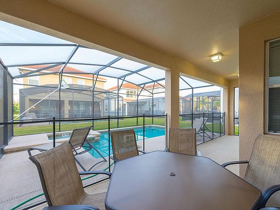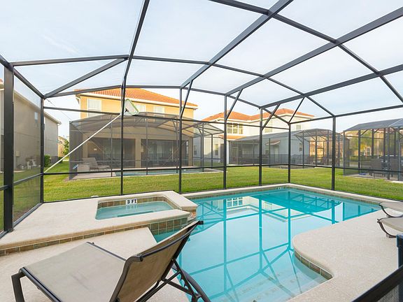 This fully furnished 6/5 Single Family home has granite counter tops in the Kitchen and Bathrooms, stainless steel appliances, maple wood cabinets and 18" tile throughout the first floor. It has its own Private Pool, Spa with a Covered and Screened Lanai. Resort offers the best amenities in town: 9,500 Clubhouse with a 50 seats movie theater, fitness center, sauna, game room, arcade games, huge swimming pool with waterfall, pool slide. 2 Spas and 24 hour manned security gated entrance, you must see! Tenant is responsible for electric and water. Internet, basic cable, phone and pool care are included in the rent.