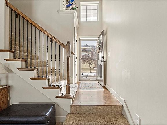 This light, bright and open Townhome in Lenexa has been meticulously taken care of over the last years. The first floor features a spacious kitchen with granite counter tops, eat-in area, generous family room with gas fireplace, cofferred ceilings, crown molding, cottage doors, half bathroom and a storm shelter room! The second floor has three nice sized bedrooms, two full bathrooms and a loft area. The new owner will benefit from a one year old HVAC system and water heater. Enjoy reasonable homeowners association dues take care of all exterior maintenance, including paint, roof, repair, roof replacement, gutters, lawn, maintenance, and snow removal.