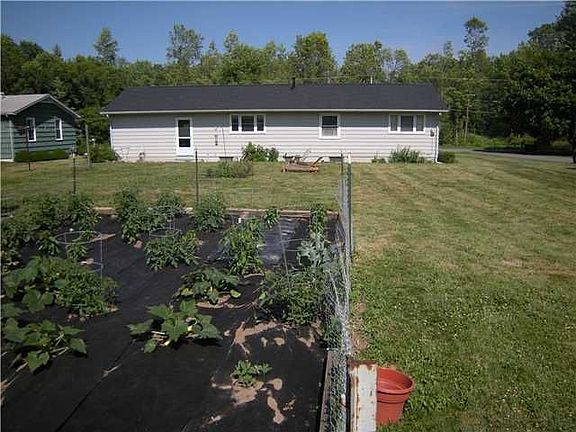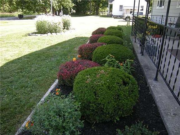 Enjoy your morning cup of coffee while relaxing on the sunlit covered front patio of this charming 3 bedroom Ranch. Eat-in kitchen w/ raised panel oak cabinets,plenty of counter space (new flr on 7/14) living room freshly painted w/decorative fireplace. 1st. flr laundry or hookups ready in full basement. Goodman furnace/central air,tear off roof 2010, blacktop driveway 2009, storm doors & overhead designer gar.door 2010.Storage shed for gardening tools, Volleyball net or mini-bikes. Plenty of space here!Located just min.from the Village of LeRoy & The Genesee County Museum.