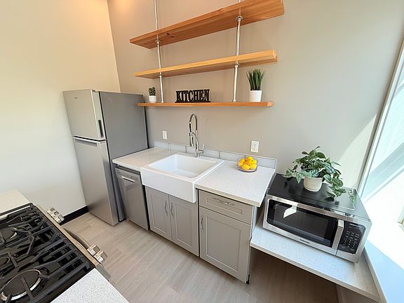 NEW STUDIO - Be one of the first tenants in our newest apartment project in St Johns! ALL UTILITIES INCLUDED - electric, water, garbage, gas SPEEDY KEYS - our fast approval process - apply through Zillow and get the keys at your first showing! Beautiful and bright second floor studio apartment now available in newly remodeled classic Portland building! Great location in the heart of St John's on Lombard St. Walking distance to cafes and shops, St John's Bridge, and Cathedral Park on the Willamette River. - 11 foot ceilings - kitchen with stainless refrigerator, gas range, dishwasher, microwave - quartz countertops - porcelain farm sink - bathroom with curved shower, tile, skylight - very well insulated building with newer vinyl windows - all new plumbing and electrical - about 300 sf - quiet well managed 10 unit community - smoke free property - ample free street parking - 24 hr recorded video surveillance - secure on site laundry facilities machines that take either quarters or credit card app payment - fully fire sprinklered and earthquake retrofitted building - RENT INCLUDES ELECTRIC, WATER, SEWER, GARBAGE - NON SMOKING PROPERTY - CAT OK WITH ADD'L $25/MO RENT (SORRY NO DOGS) - $1000 FULLY REFUNDABLE SECURITY DEPOSIT - 6 or 12 MONTH LEASE - $35 SCREENING FEE Feel free to contact us for more information or to schedule a viewing Screening Criteria available upon request SEE PROPERTY DESCRIPTION