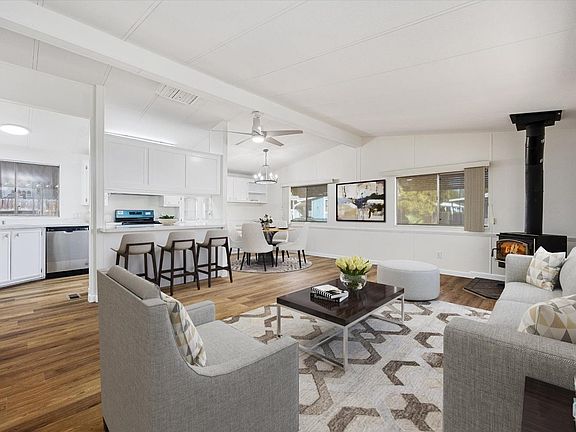 Experience the perfect harmony of comfort and convenience in this exquisitely updated 3-bedroom, 2-bath manufactured home, proudly situated on OWNED LAND permanent foundation with a corner lot. This exceptional residence offers an array of modern upgrades, designed to elevate your lifestyle. Enjoy year-round comfort with central air conditioning and heating, while cozying up by the charming fireplace that adds warmth and ambiance. The home showcases luxurious quartz countertops, fresh paint, and elegant wood-like flooring, enhancing each room's aesthetic. Both bathrooms have been beautifully refreshed with reglazed showers, complemented by stylish new mirrors that amplify their charm. Outside, a quaint and delightful backyard invites relaxation and outdoor enjoyment. Nestled in a community that feels like a perpetual retreat, this home offers an idyllic blend of leisure and sophistication. Truly a gem, awaiting your discovery! FHA, Conventional & VA loans are welcome!