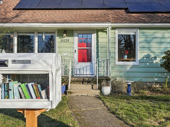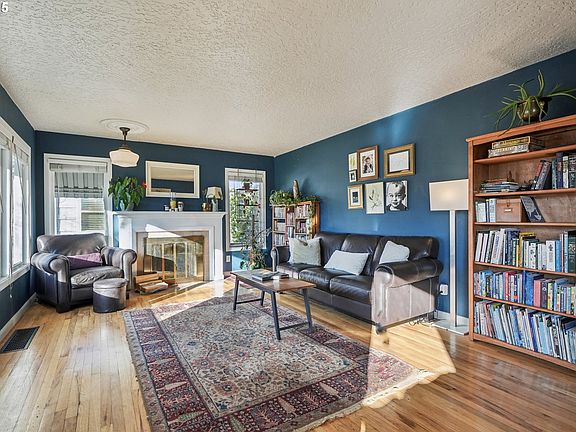 Enjoy the warmth and character of this well-maintained home! South-facing living room is bathed in natural light, highlighting hardwood floors and a wood-burning fireplace. Remodeled kitchen, ideal for home chefs, has granite countertops, reclaimed wood eat bar, and stainless-steel appliances, including a 5-burner gas range with convection oven. Main-level bedrooms offer views of a lush backyard, with one providing access to the full- fenced outdoor space, perfect for pets or entertaining. Large upstairs bedroom offers fir hardwoods complemented by newer vinyl windows for peace and efficiency. Basement offers versatility—use it as a creative space, office, or playroom– and includes ample storage, laundry, and a bath with non-conforming clawfoot tub. Eco-friendly updates include heat pump water heater (11/24) and solar panels estimated to offset 70% of electricity costs. Landscaped yard comes alive in spring and summer with a full-grown cherry tree and fragrant jasmine arbor, while also reducing the water bill by qualifying for the Clean River Rewards Program. Garage, deck, and large yard provide opportunities for outdoor enjoyment. Updates like a rebuilt, tuck-pointed chimney (4/21) and newer roof with component warranty through 2029 ensure peace of mind. [Home Energy Score = 4. HES Report at https://rpt.greenbuildingregistry.com/hes/OR10235527]