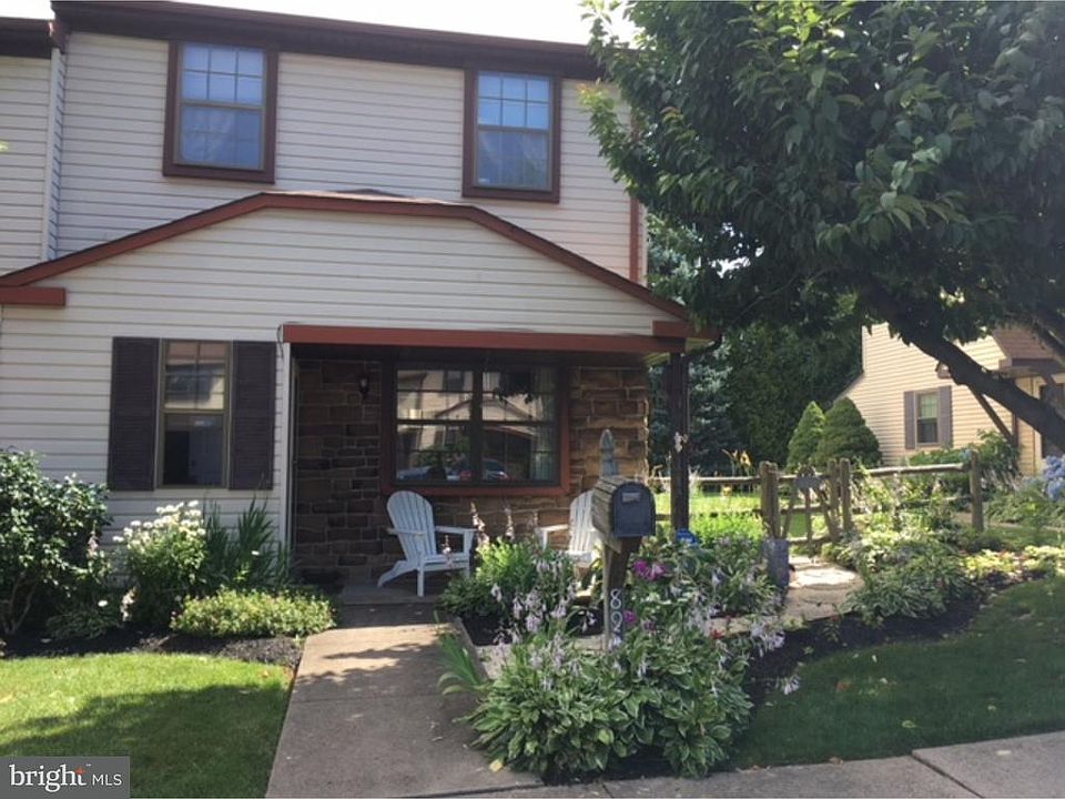 End unit Townhome in Stover Mill. One of the best lots in the community. Great front English style gardens surround the property. Covered front porch with sliders from the kitchen. Rear yard is very private with established plantings of shrubs & perennials, gorgeous lot. Sunken living room in the front of the home steps up to the dining room. Full sized eat in kitchen in the rear of the home. First floor laundry room off the kitchen. Gas Heat with Central Air Conditioning. Central Bucks School District. Playground & Tot lot,Basketball & Tennis Courts.