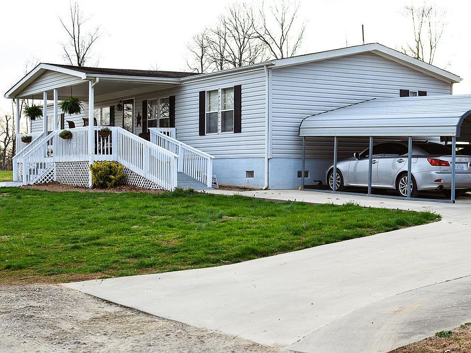 VERY NICE MOBILE HOME THAT LOOKS BRAND NEW. NEW FLOORING NEW INTERIOR PAINT AND READY TO MOVE INTO. SPLIT BEDROOM PLAM WITH VERY LARGE MASTER BEDROOM AND PRIVATE BATH. HOME EVEN OFFERS DINING ROOM. VERY PRIVATE COUNTRY SETTING. FIREPLACE WILL CONVEY . DOUBLE METAL CARPORT CONVEYS.