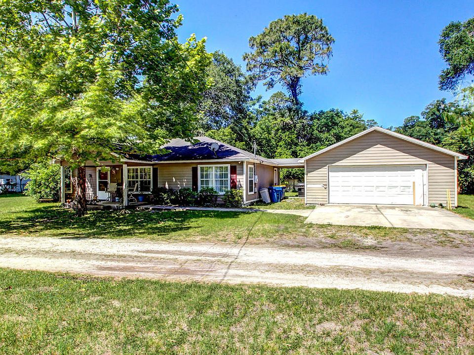 No HOA/CDD fees! Spacious 3/2 on nearly a half acre lot! Master en-suite with large walk in closet, split bedroom floor plan with open kitchen and family room area. Office/den could be converted to a fourth bedroom. Also included is a detached, spacious two car garage. This home is in a serene, quiet location and only a few hundred feet from to the Broward river. Easy access to I95 and near many amenities. Can be combined with two other adjacent properties (MLS 771346 & 771338).