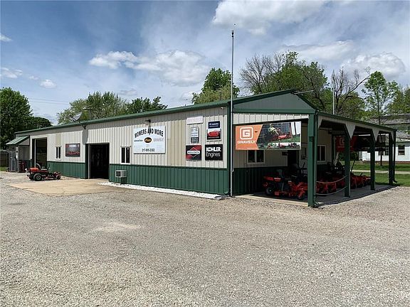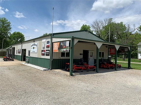 30x80 steel building built by Niebrugge Lumber. Fully insulated & heated throughout with showroom being heated & cooled. 200 amp service with (2) 220 volt plug ins. 10'6 ceiling height. 6" thick concrete floors. Propane currently but natural gas available. Air compressor lines ran through-out. Overhead hoist. Outside storage for acetelyne tanks. Could be used as storage, man cave or repair shop. Owner is willing to sell the business & inventory and will stay on to work for awhile. Corner lot gives you 280' of road frontage. Covered Porch: 10x30; Showroom: 27x30; Shop: 29x30; Storage: 24x30. Two 9'x10' overhead doors & one 7'x10' overhead door.