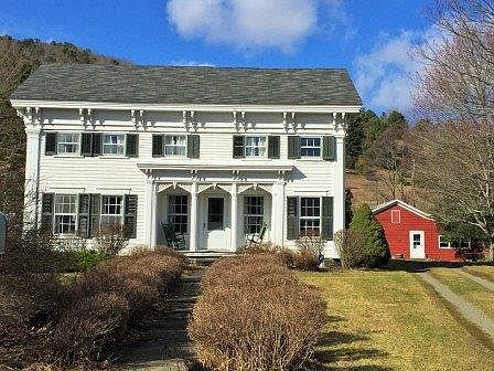Stunning Colonial Revival home in the historic Charlotte Valley on 210+ acres with scenic mountain views, a stream with a secret waterfall, hayfields, fenced pastures, two large paddocks, mature trees, professionally landscaped grounds, stone patio, 3 covered porches, 5 outbuildings plus an artist studio/guest house. The main house boasts original wide board floors, moldings, custom cabinetry, library, formal dining room, spacious living room and a walk-in pantry. The open floor plan chef's kitchen with top of the line appliances features a wood burning fireplace in the sitting area and a dining alcove with french doors leading to the kitchen garden. The artist studio/guest house is 24x33 with numerous windows to let in the natural light and allows you to enjoy the beauty of the mountains. Currently the property is operating as an organic sheep farm with 60 acres fenced pasture, 2 organic timothy alfalfa hayfields and 2 paddocks. The workshop barn is 20x32, equipment barn is 35x37 which can hold 4 cars plus the equipment, the sheep barn (ex-dairy w/hay mow) is 35x50 plus an 11x12 addition and the corn crib is 9x6. This historic property is only 40 mins to Cooperstown, 1 hr to Albany and 3 hrs to NYC.