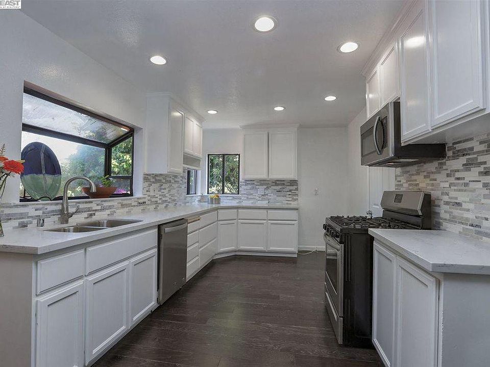 - KITCHEN FEATURES: Eat In Kitchen, Garbage Disposal, Range/Oven Free Standing, Microwave, Counter - Solid Surface, Updated Kitchen, Counter - Stone