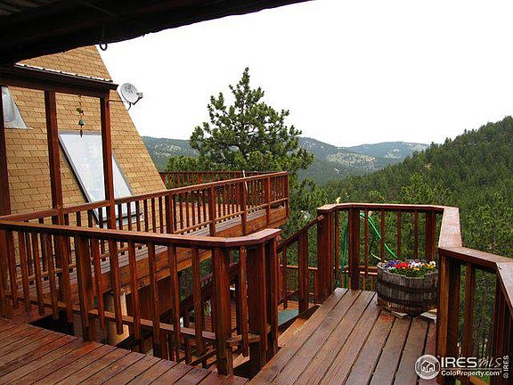 Comfortable, well-maintained home nestled among the pines just 18 minutes above Boulder! Dramatic views, open floor plan and exceptional privacy. The detached garage boasts a 500 sqft fully finished office loft. County maintained roads and gently sloping driveway provide easy year-round access. Hot water heat, first-class water system, newly upgraded well and septic. Fenced and level play/kennel area, over 900 sqft deck.