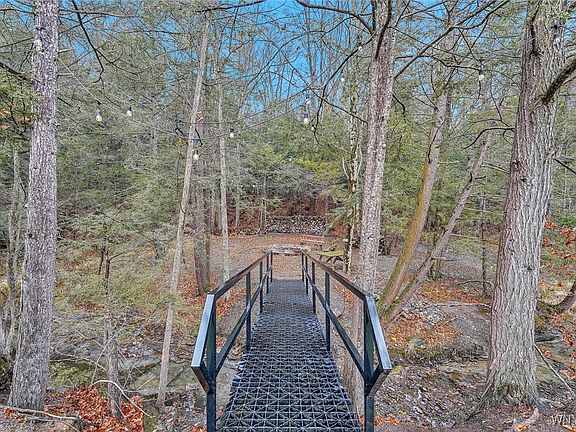 Come see this exceptional Timberbuilt (Kirsch Series) home set on 16.94 private acres in Strykersville, NY. This custom build features reclaimed barnwood floors, in-floor radiant heat, custom lighting, surround sound, and a stunning great room with balcony overlook. The primary suite includes solid-wood barn doors, a built-in bed frame, and matching soapstone-accented furniture. The upgraded kitchen offers reclaimed barnwood cabinetry, soft-close drawers, fabric-lined storage, undercabinet lighting, and a new (2025) high-capacity refrigerator. Spa-like baths feature tiled multi-head showers and a relaxing soaking tub with TV. A heated, smart garage includes hollow-core plank, smart doors, and a professional-grade hot-water pressure washer. Outdoor amenities include creek access, Pella windows and doors, recessed soffit lighting, powered firepit area, Generac generator, a 20x14 shed with power and water, newly planted maple and magnolia trees, propane grill lines, and pet fencing. Whole-home systems include geothermal heating/cooling, forced air with propane backup, a 2024 instant combination water boiler, Life Breath circulation, central vacuum, essential oil diffuser, and a four-stage water filtration system with softener. Smart-home features include HomeSeer automation with sensors, mobile control, Alexa/Google compatibility, Unifi networking with cameras, whole-home WiFi, and Spectrum 1GB service. The finished lower-level bar area includes a commercial refrigerator, ice maker, surround sound, RedZone TV setup, sitting area, and a urinal—ideal for entertaining. This remarkable Timberbuilt home blends luxury, privacy, and modern comfort in a peaceful country setting.