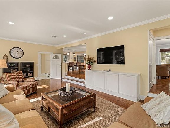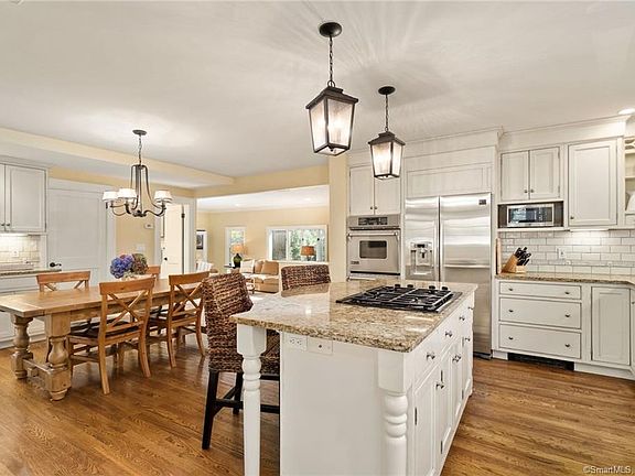 BEST HOUSE IN THE PRICE CATEGORY! PRICED TO SELL! Vintage New Canaan landmark with charm of yesteryear, yet renovated and completely modernized. This chic & fresh 3600 SF, 4 bedroom, 3 bath antique has been thoughtfully expanded and improved over time. Featuring sunny chef's kitchen with breakfast area and sitting island opens to spacious family room, formal dining room, office, living room with fireplace, four season solarium and big screened-in porch. Wonderfully bright home has surprisingly large spaces for entertaining both inside and out. Park-like grounds with level yard and expansive bluestone terrace and stone sitting walls. Generous sized master bedroom suite with 3 additional bedrooms complete the 2nd floor. Two- car garage is topped by an oversized bonus room with private entrance, perfect for use as an au-pair/in-law suite. Conveniently located with close proximity to the village, pkwy, schools and train. Simply perfect for today's lifestyle.