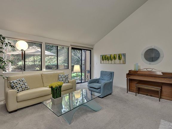Highly desirable location! Beautiful, light-filled, spacious townhome in a well-maintained smaller community with mature foliage. Feels like a sfr. Private setting ,backyard area, tennis court and pool/spa in the common area. Vaulted ceilings, skylights. New granite counters in the kitchen,updated SS appliances,newly re-finished floors and freshly painted cabinets in designer colors. Lighting updated throughout and updates to the tiling and cabinets for fireplace. Newer furnace and recently updated WH