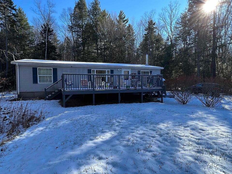 Welcome home to this 2007 Manufactured home on 5.05 acres of land in Beautiful Groton. Conveniently located just 20 min drive west of Plymouth area on Route 118 in Groton lies this level wooded lot with a 2 bedroom 2 bath home nicely placed with plenty of room for a garage to be added. Enjoy afternoons on your 16x24' deck. Inside you'll find plenty of space with vaulted ceilings throughout, large windows a skylight in the kitchen for tons of natural light, open concept living area, a den/study with a wood burning fireplace, large closets, and a laundry with a small deck off the back. Come to Groton and enjoy the fantastic mountain biking, rock climbing, snowmobiling and many outdoor activities this area has to offer. Don't wait this one will be gone before you know it!