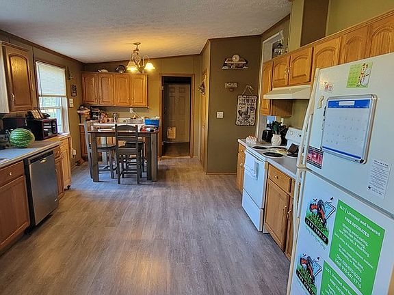 Very nice 3 bed 2 ba home on 2.4 acre lot on Farlington Lake. Scenic shady lot, 10x12 and 10x24 shed w/heat, large 2 car detached garage with new doors, tornado safe, 2 car carport, 2 propane tanks and 11x17 screened in porch.. Home has new carpet, paint, and vinyl plank in kitchen and laundry. Just walk across the road to fishing and boat dock. Better hurry!