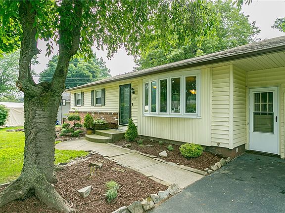 Looking to downsize? First time buyer? What a great opportunity! Move in ready RANCH with 3 BRS 1.5 bath. First floor has front living room (currently used as formal dining) and awesome family room addition with gas fireplace and sliding glass door to deck and yard! Kitchen boasts Amish Handmade custom cabinets and eat in area. All appliances included. Renovated bath has tub with tile surround, new modern ceramic floor and opens to primary bedroom. 2 other bedrooms have large closets. Venture downstairs to the great finished basement with new carpet! Meticulously landscaped including row of arborvitaes for privacy. Fully fenced yard! Awesome deck and patio with retractable awning. Large shed in addition to the 1.5 car garage. Vinyl replacement windows throughout. Showings Begin Thursday 7/20 at 9am! Public Open Sat 12-2pm! Offers are due Tues 7/25 at 11am!